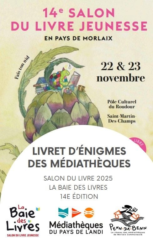 Une partie des médiathèques du réseau Penn-da-benn s'investit chaque année dans le salon du livre jeunesse, organisé par la Baie des livres (Saint-Martin-des-Champs, Morlaix, Carantec, Pleyber-Christ, Plourin-lès-Morlaix, Saint-Thégonnec Loc-Eguiner). Pour la 14ème édition, qui aura lieu au Roudour à St-Martin-des-champs les 22 et 23 novembre, retrouvez les dans l'espace Biblio-raconte !