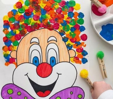 Au programme de cet atelier, mon clown multicolore à la peinture !